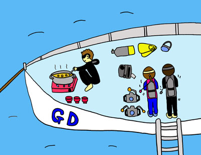 西表島と言えど、さすがにお正月は寒い。ゆっくり・のんびりダイビングも、この時ばかりは身にこたえる。 |